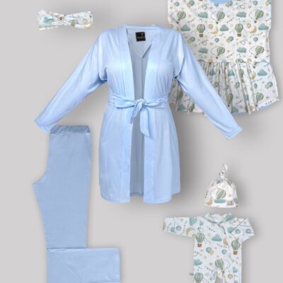 شامل تاپ شیردهی سایز 2 – شلوار سایز 2 – روبدوشامبر – هدبند مادر
