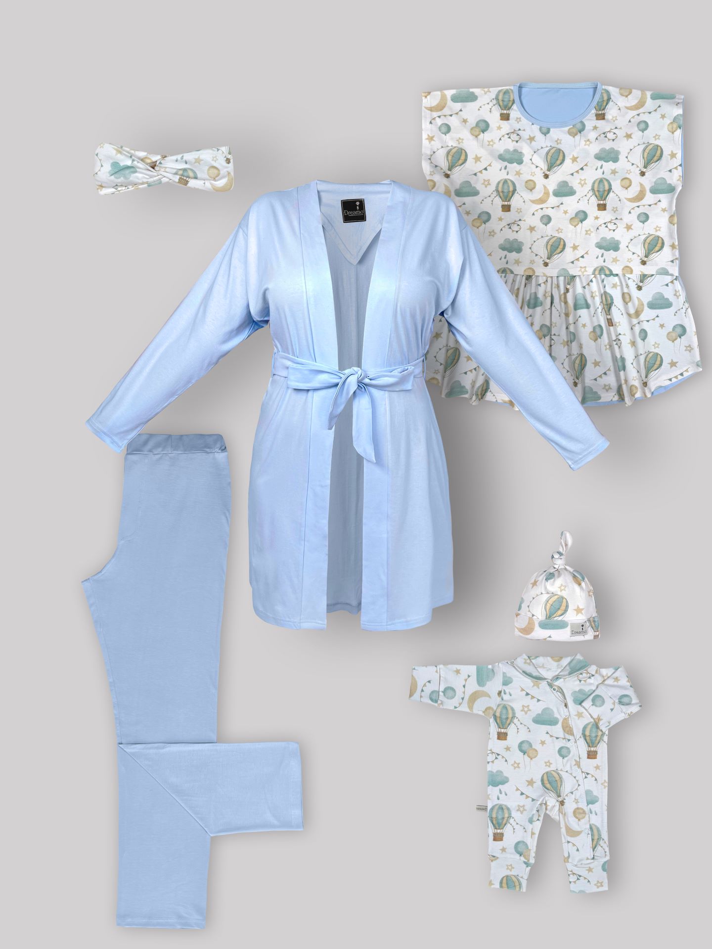 شامل تاپ شیردهی سایز 1 – شلوار سایز 1 – روبدوشامبر – سرهمی و کلاه – هدبند مادر – تمام پنبه – ضد حساسیت