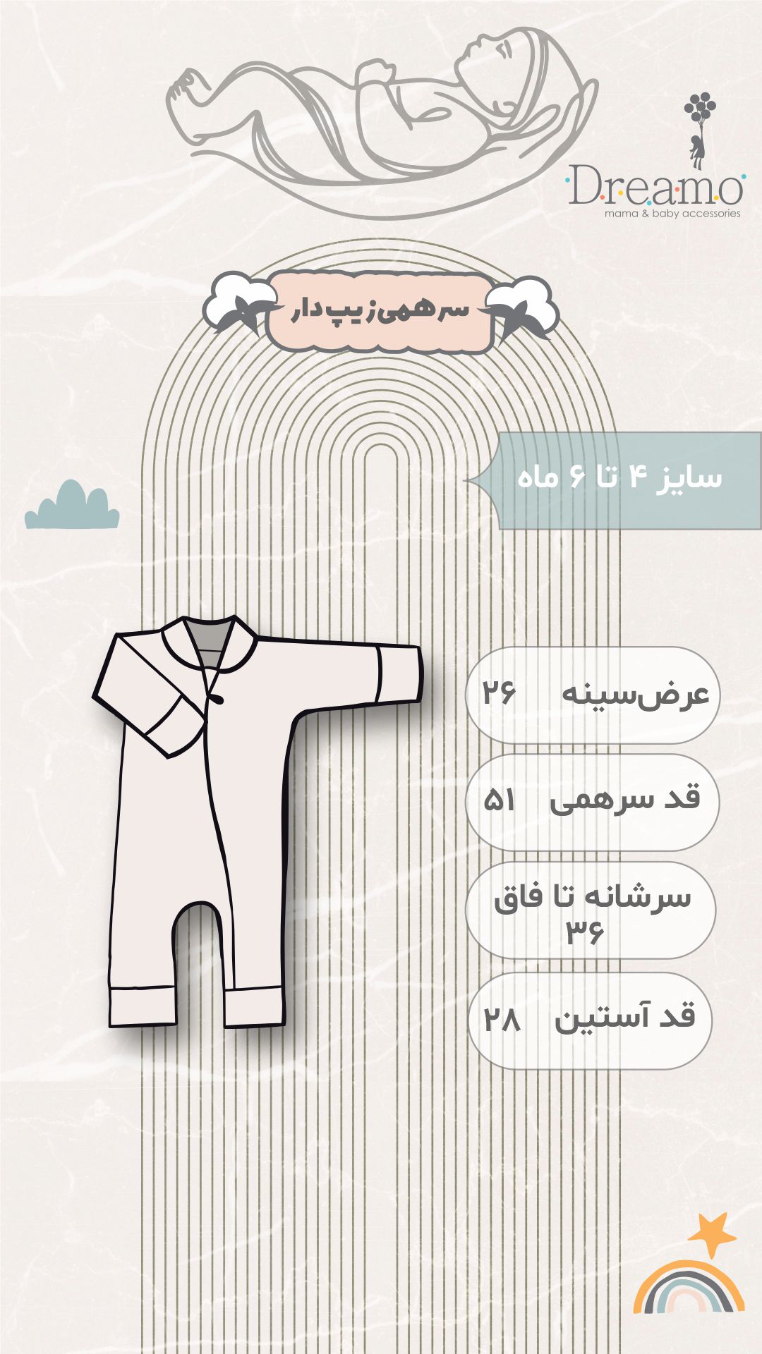 سرهمی نوزاد طرح مادلین – سایز 4 تا 6 ماه، پنبهای و ضد حساسیت