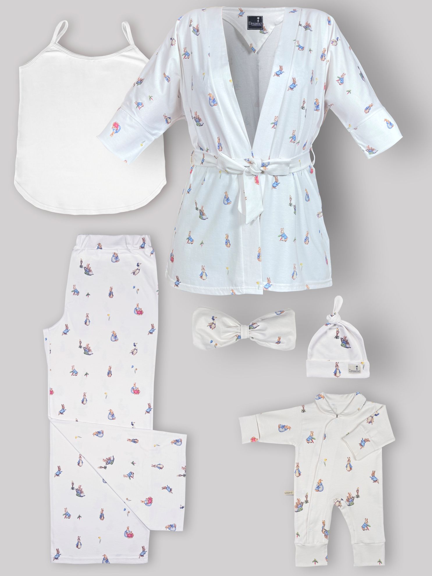ست 6 تکه بیمارستانی طرح پیتر ربیت با سرهمی و کلاه (سایز2) یک انتخاب کامل و کاربردی برای مادر و نوزاد است.