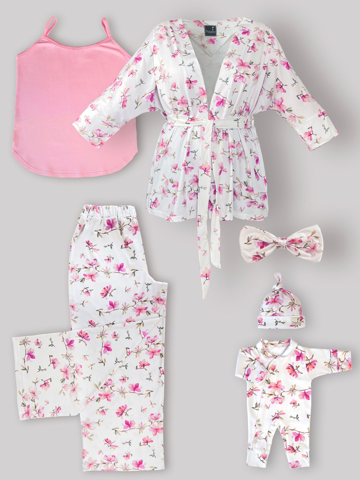 ست 6 تکه بیمارستانی طرح مگنولیا Magnolia با سرهمی و کلاه (سایز1)
