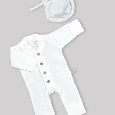 ست سرهمی و کلاه نوزاد-جنس موسلین- تک رنگ -رنگ سفید