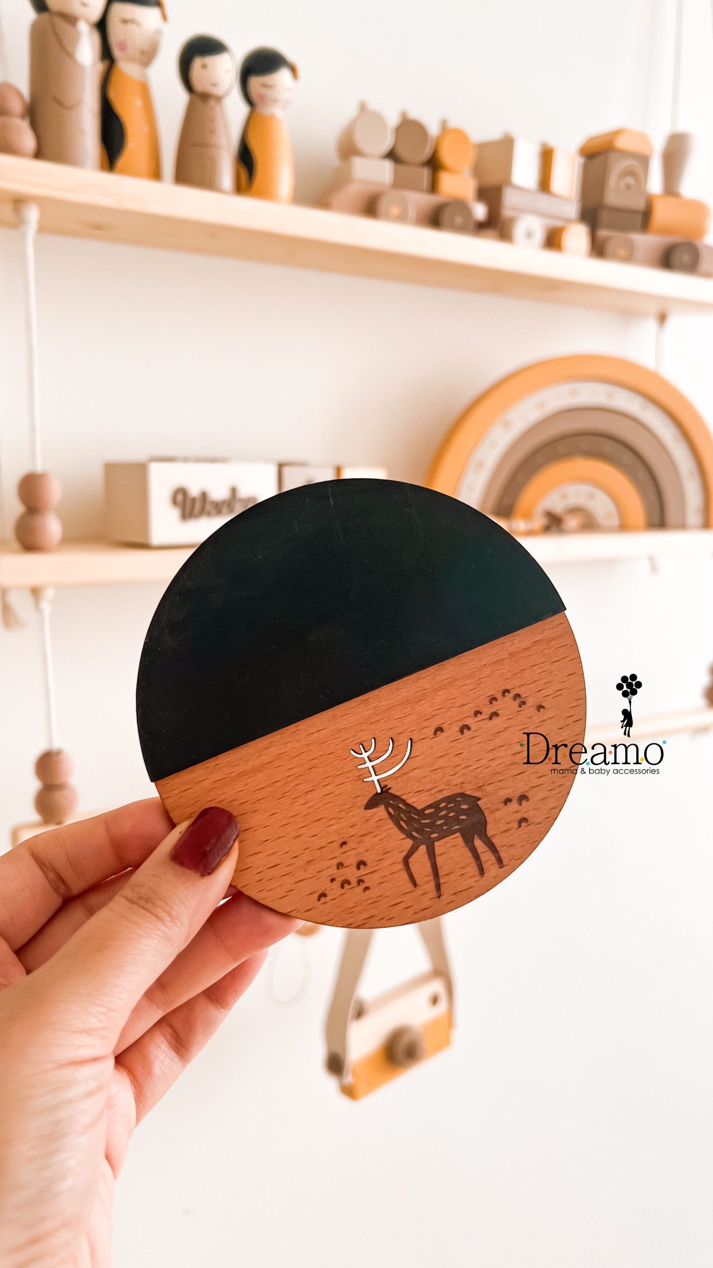 دیسک چوبی تخته سیاه طرح گوزن ها – اطلاعات تولد