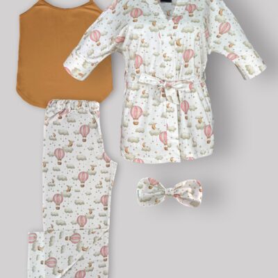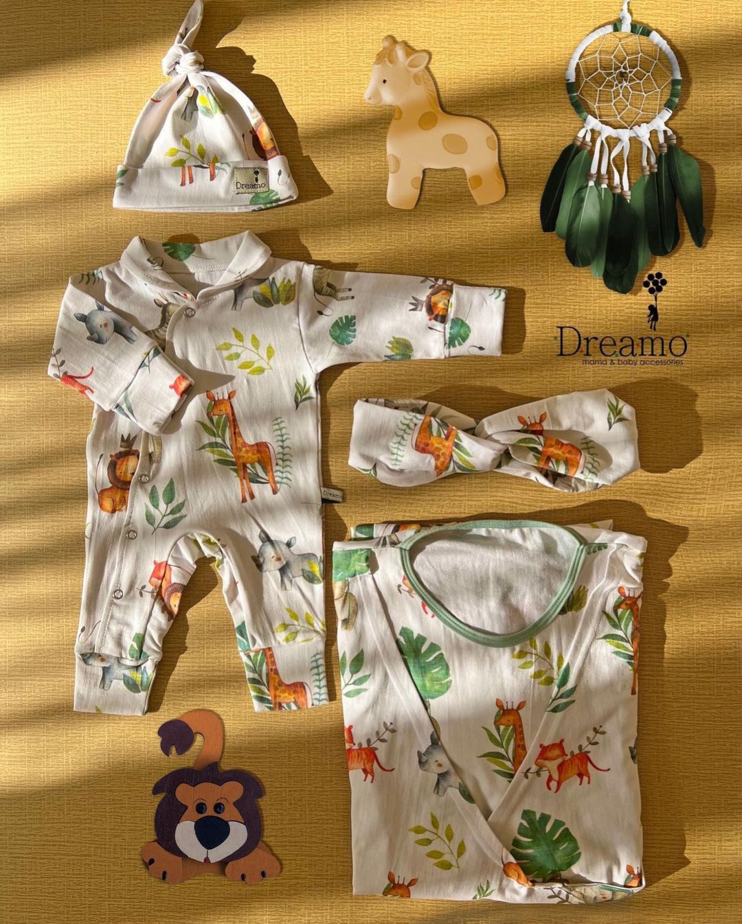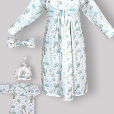 ست سرهمی و کلاه و پیراهن بارداری – شیردهی طرح سافاری (سایز 2)