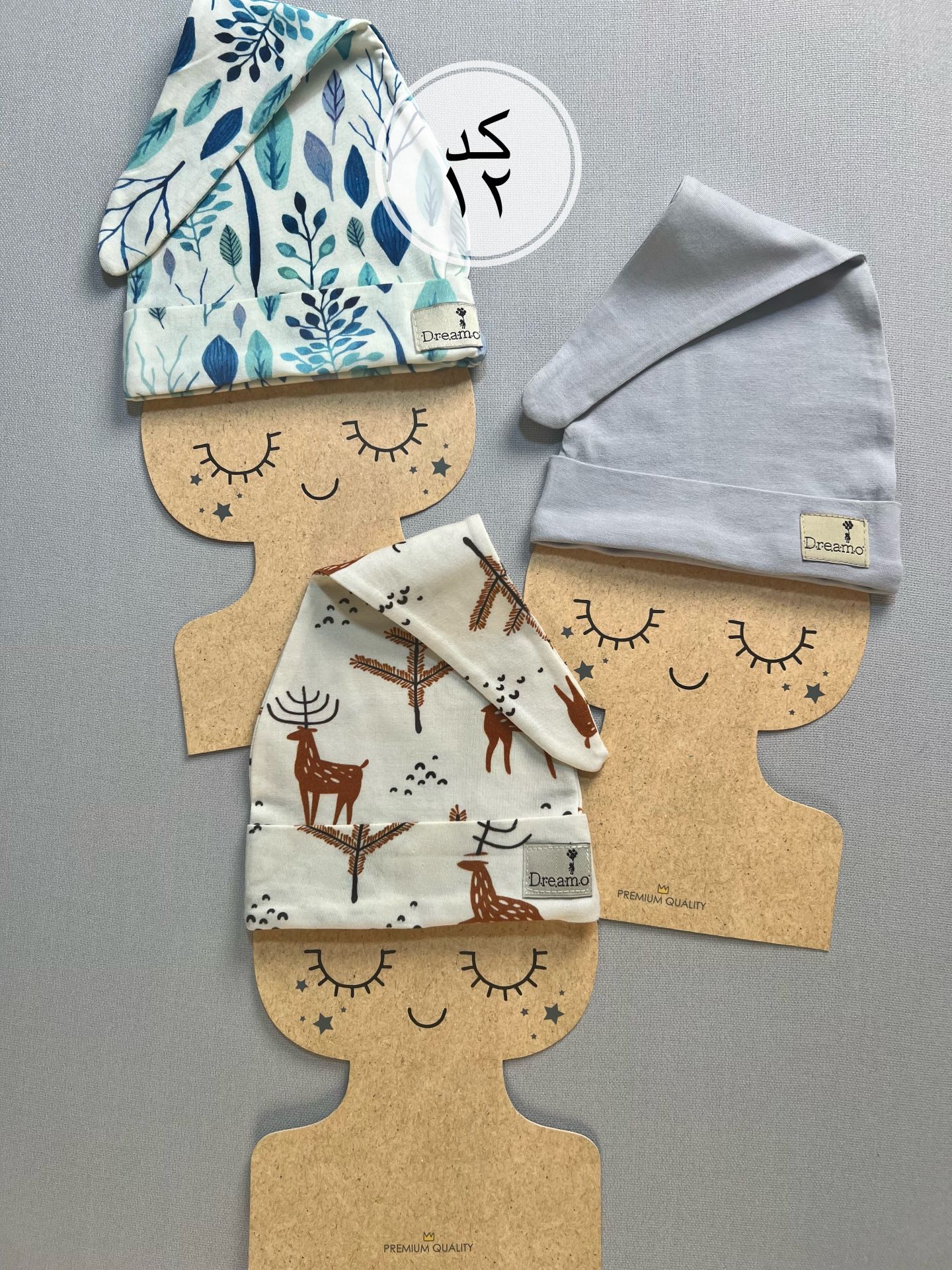 پک سه تایی کلاه پنبهای گرهای نوزاد – کد 12