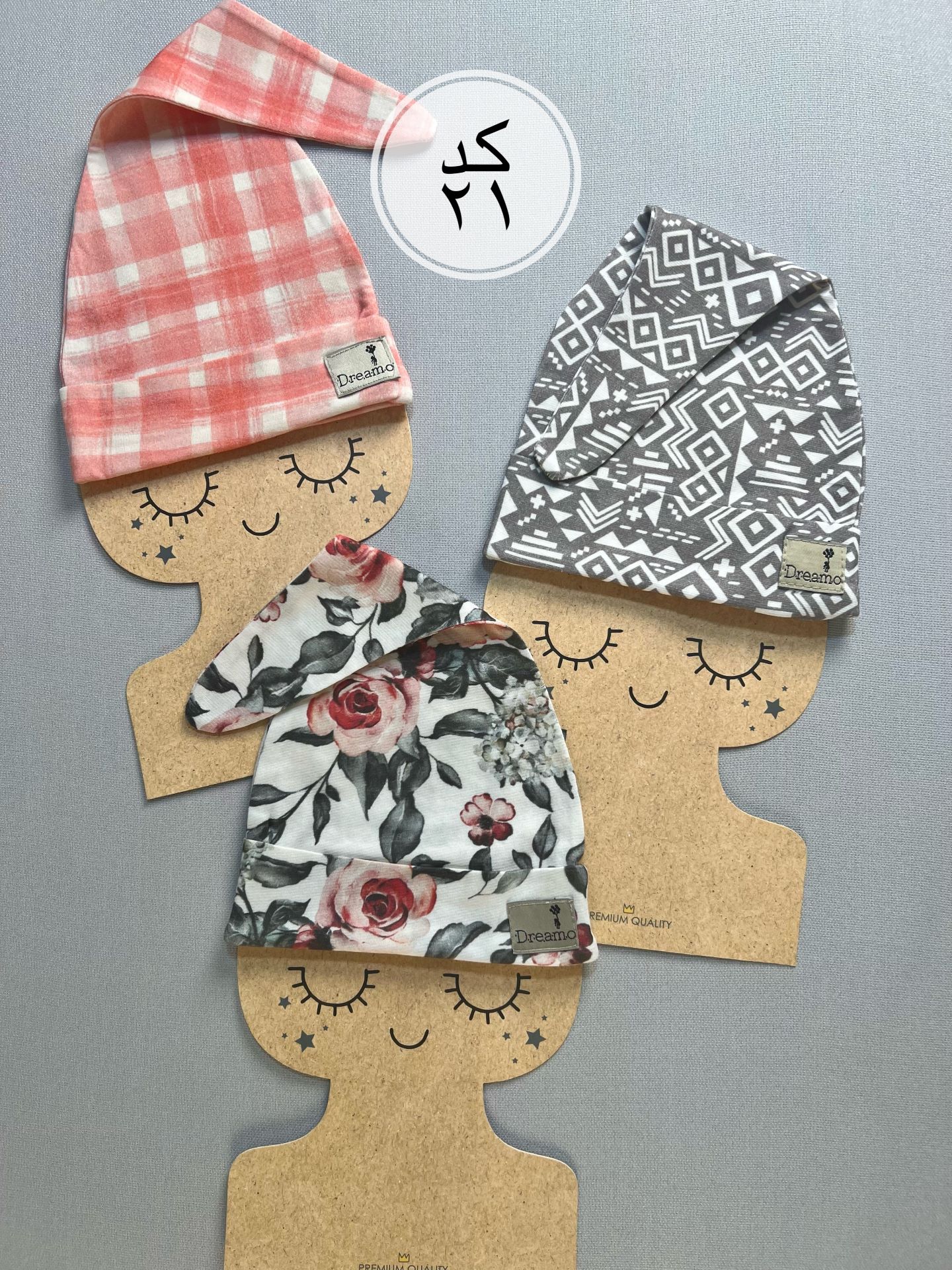 پک سه تایی کلاه پنبه ای – گره ای نوزاد – کد21