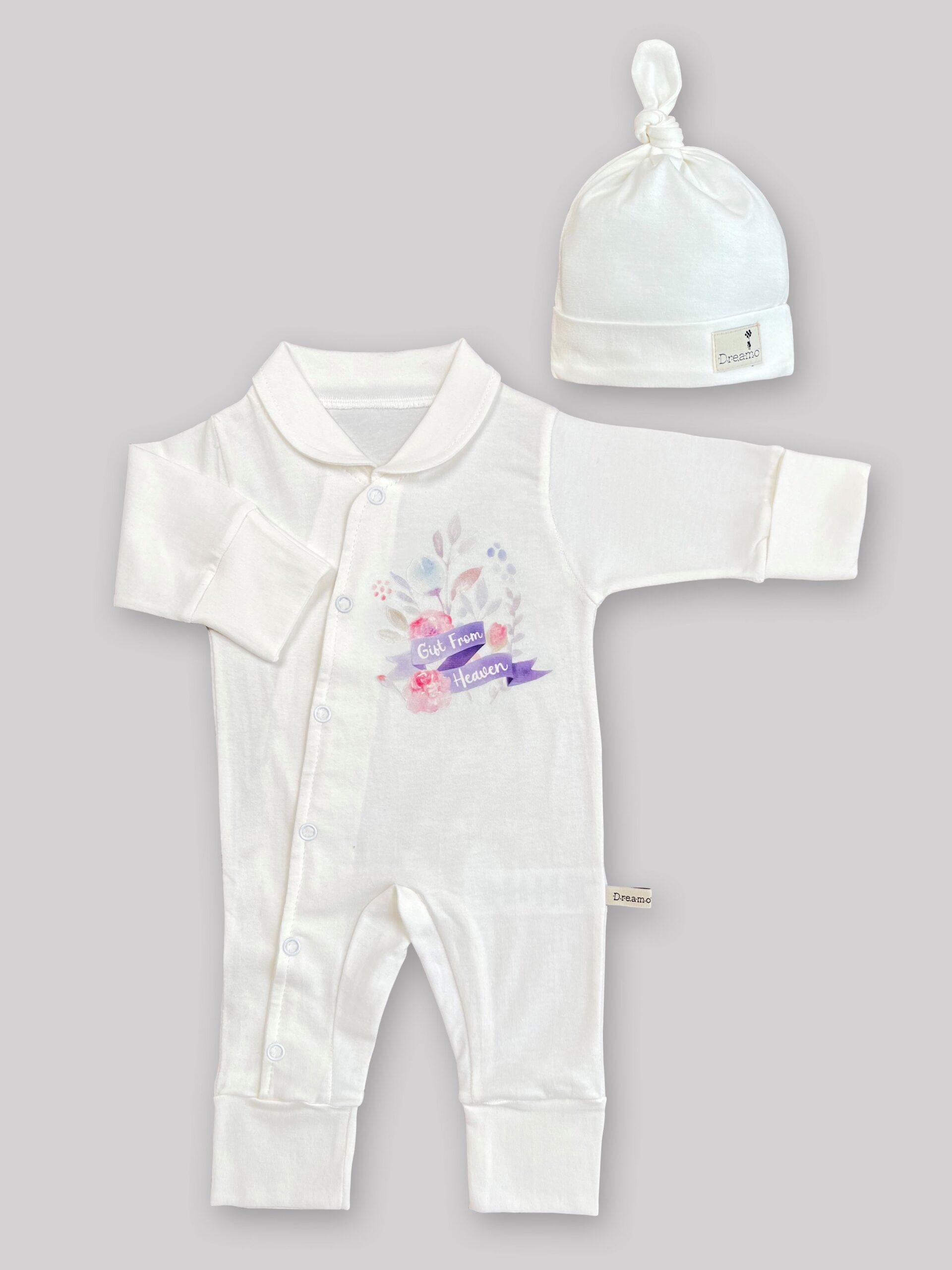 ست سرهمی و کلاه سفید با استیکر طرح کاملیا (کد1) – بهترین انتخاب برای استایل شما