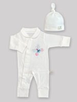 این ست شامل یک سرهمی نرم و راحت و یک کلاه هماهنگ است که از بهترین مواد اولیه تهیه شده است. سرهمی دارای طراحی جذاب و رنگ سفید است که به راحتی با سایر لباسها ست میشود. همچنین، استیکر طرح نسیم بهاری بر روی سرهمی، جلوهای شاداب و دلنشین به آن میبخشد.