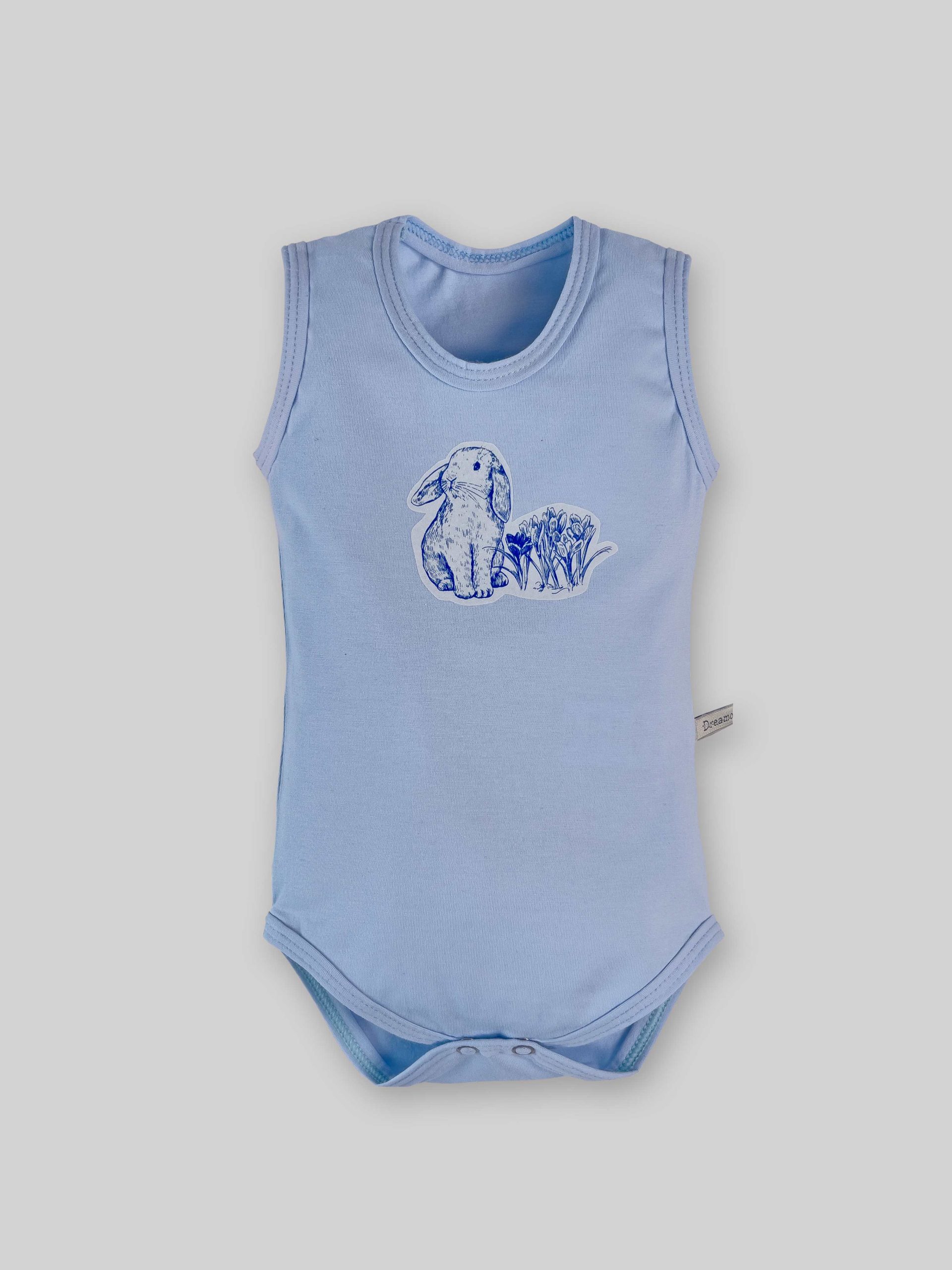بادی – زیر دکمه آستین حلقه ای تک رنگ آبی (با استیکر طرح ویلیج)