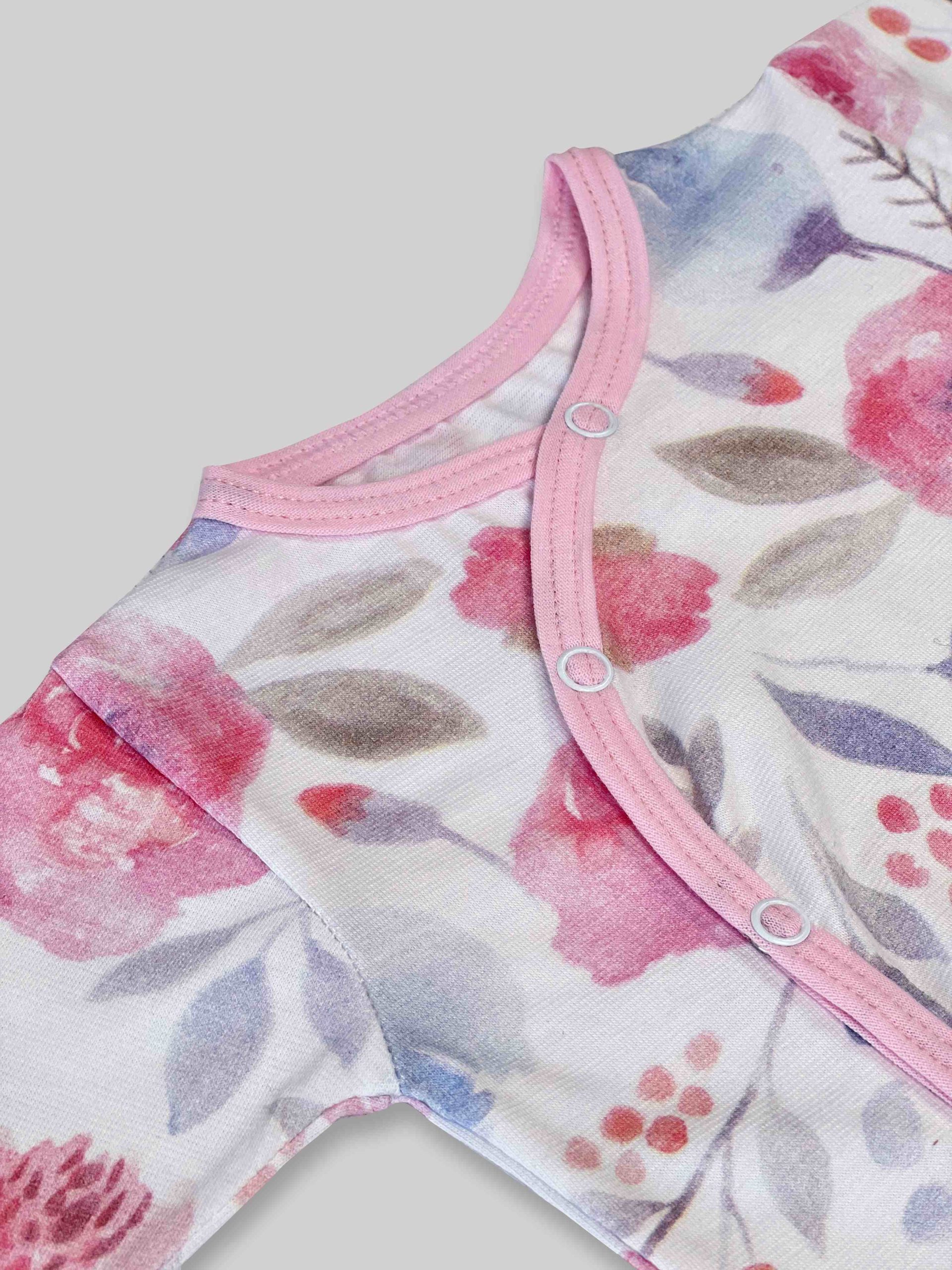 بلوز جلو دکمه دار نوزاد طرح کاملیا