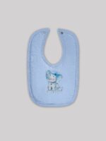 پیشبند نوزاد تک رنگ آبی با استیکر طرح اسلیپی هد