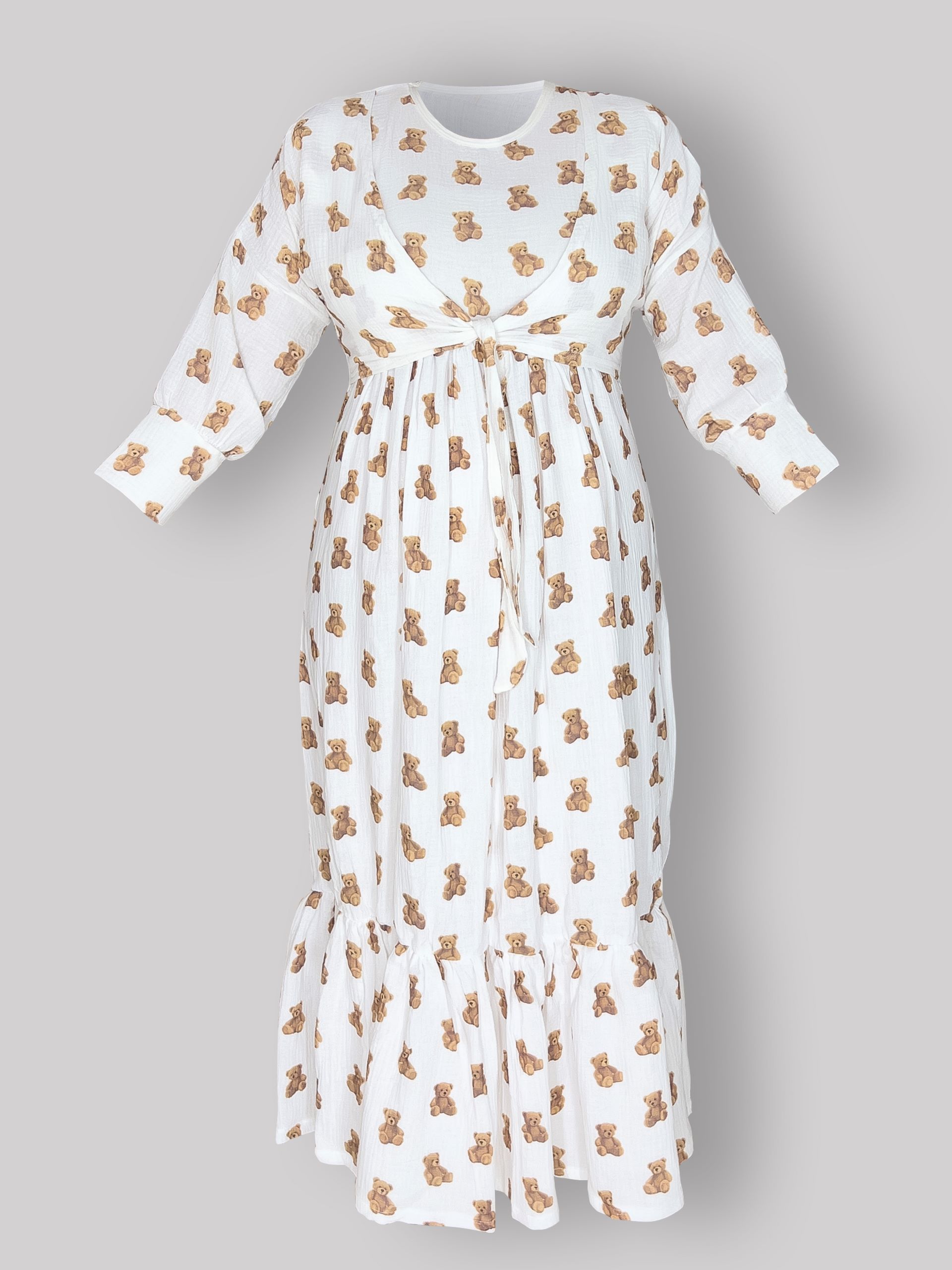 پیراهن بلند بارداری – زایمان – شیردهی موسلین وارداتی – طرح تدی (Teddy)