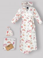 علاوه بر زیبایی، راحتی نیز در این ست به خوبی لحاظ شده است. روبدوشامبر سایز 1 از پارچههای نرم و با کیفیت تهیه شده که به پوست حساس مادر و نوزاد آسیب نمیزند. همچنین، دورپیچ و کلاه طراحی شدهاند تا به راحتی قابل استفاده باشند و در عین حال، از نوزاد در برابر سرما محافظت کنند.