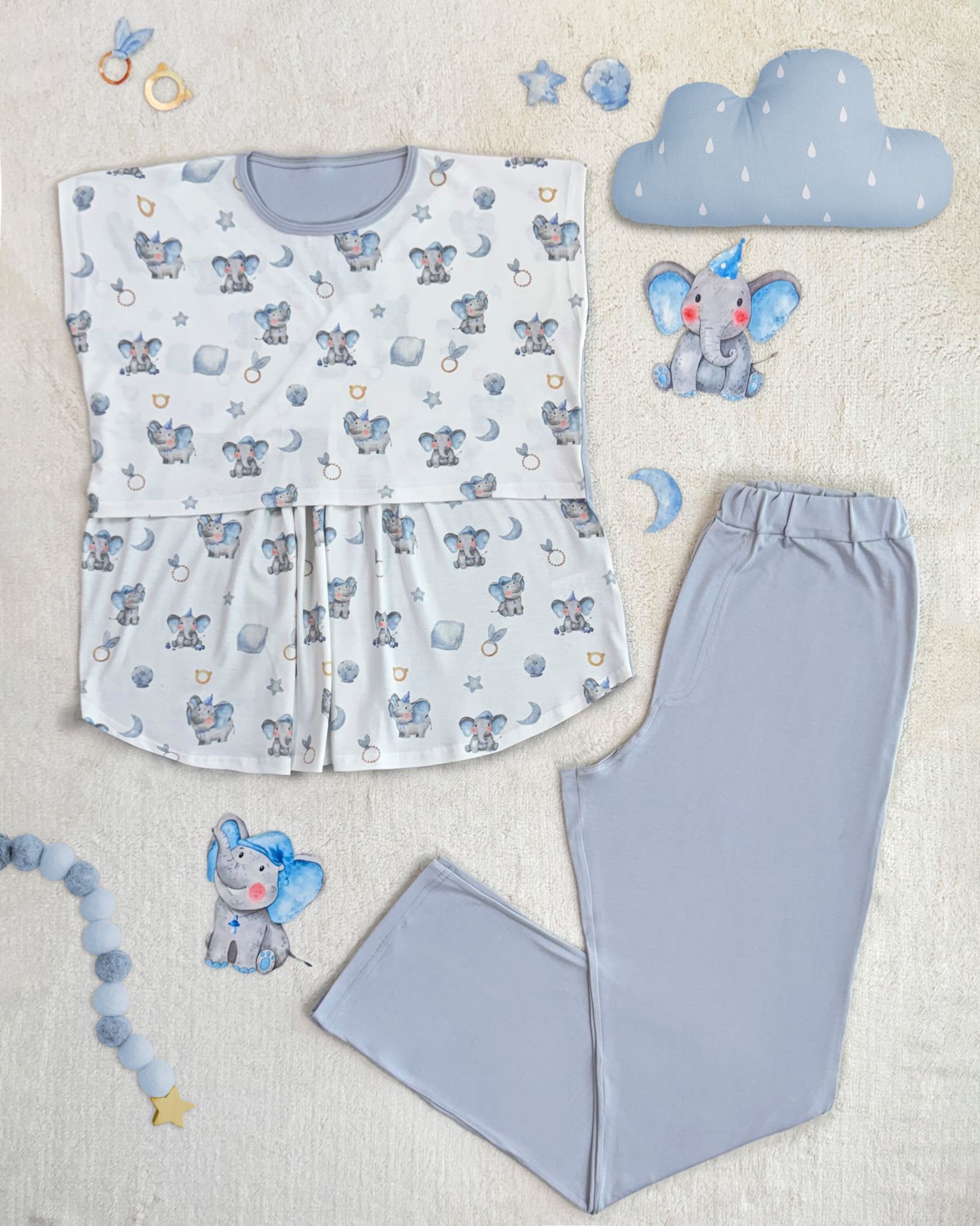 ست 2 تکه زایمان – شیردهی (تاپ شیردهی – شلوار ) مادر طرح اسلیپی هد (Sleepy Head)- تاپ و شلوار سایز 1