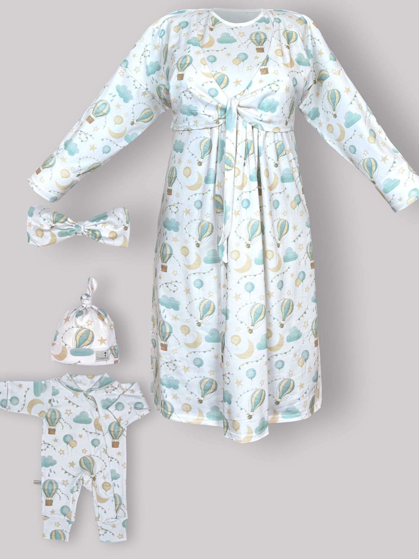 ست پیراهن– شیردهی آستین بلند طرح بالن آبی سایز 1 :