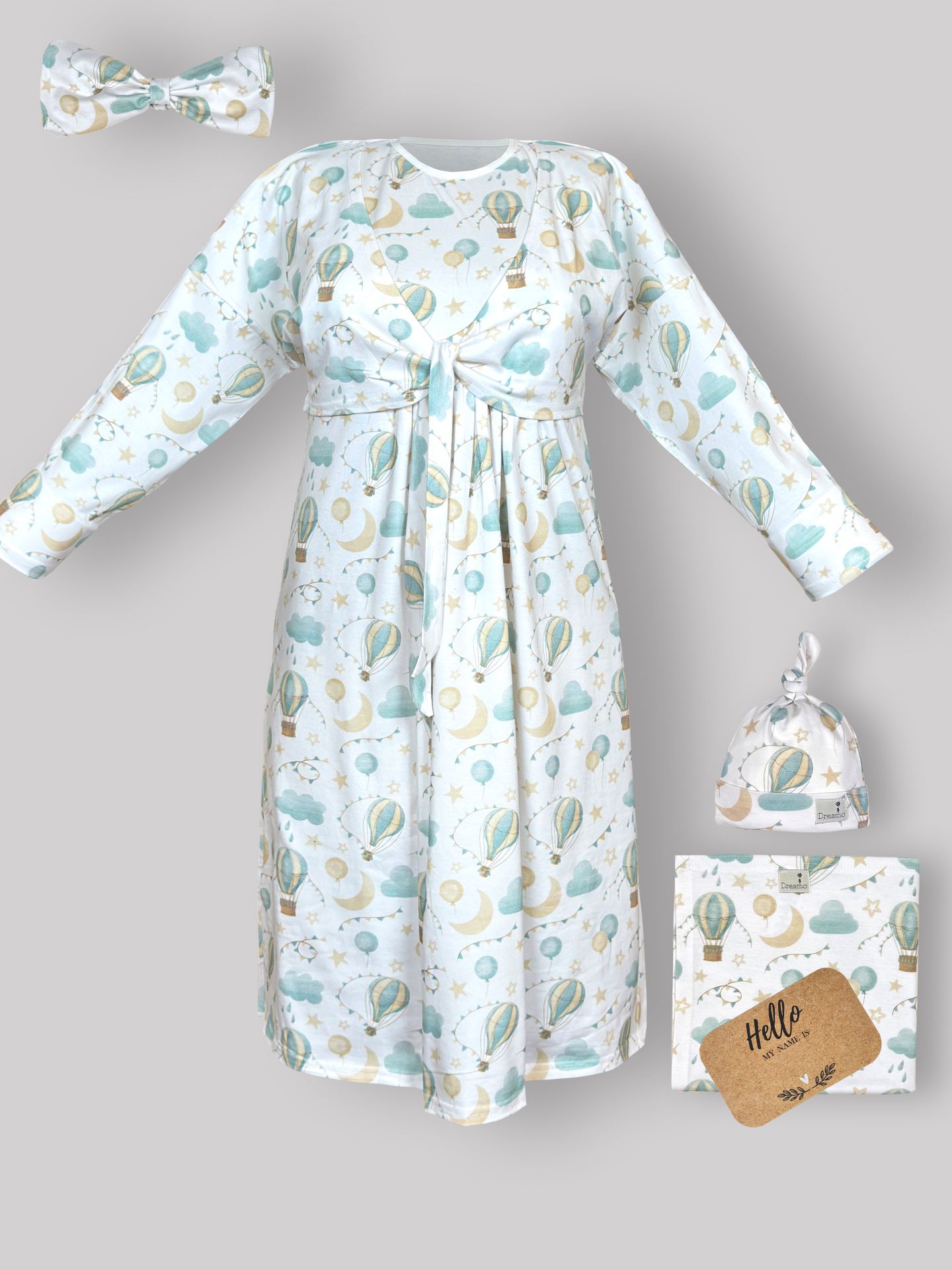 ست پیراهن– شیردهی آستین بلند طرح بالن آبی سایز 2 :