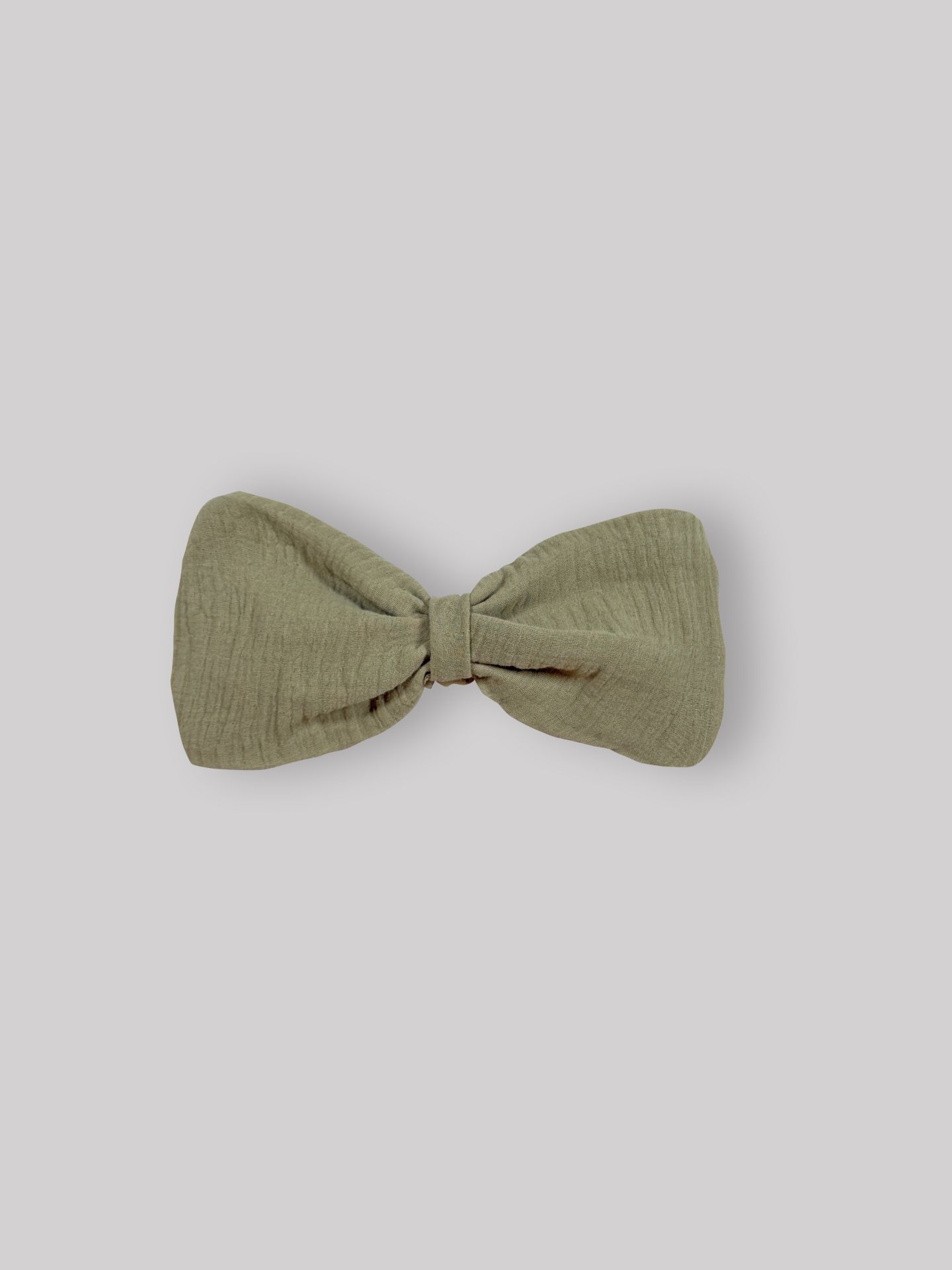 هدبند(تل) نوزاد – مدل پاپیونی – جنس موسلین- تک رنگ -رنگ سبز زیتونی