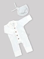 ست سرهمی و کلاه نوزاد-جنس موسلین- تک رنگ -رنگ سفید