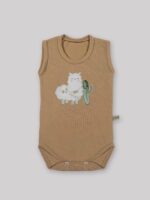 بادی – زیر دکمه آستین حلقهای تک رنگ کرم- نسکافه ای نوزاد (با استیکر طرح دالی)