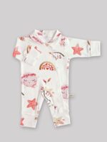سرهمی نوزاد 0 تا 3 ماه با یقه ب ب و دستکش دار – طرح آسمان بوهو