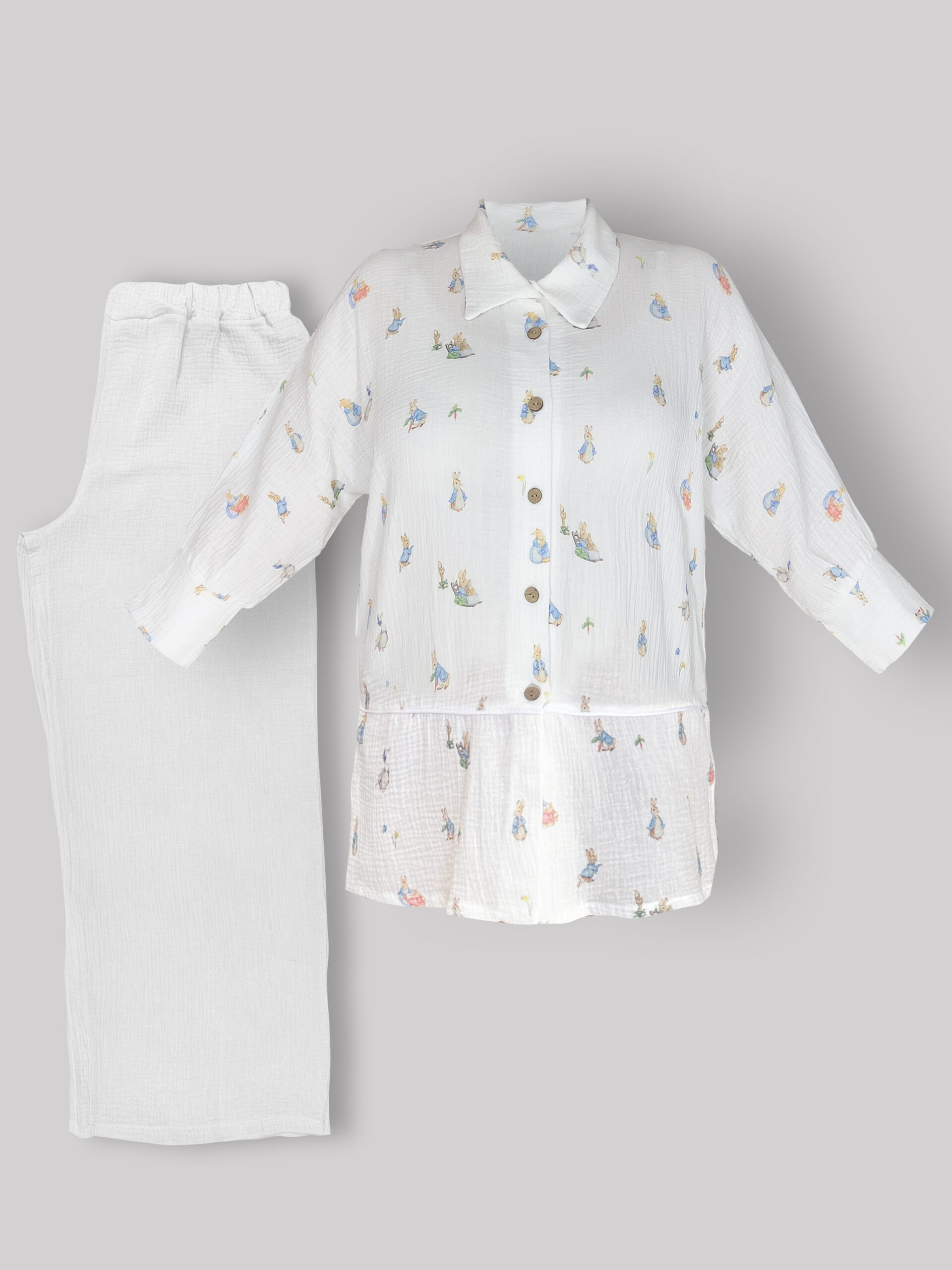 ست شومیز (طرح پیتر خرگوشه) و شلوار سفید موسلین