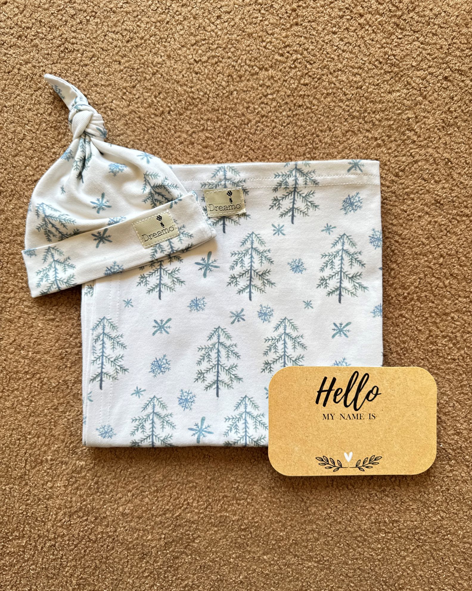 ست دورپیچ و کلاه نوزاد طرح وینتر (قنداق استاندارد پزشکی) ، همراه ا کارت اسم نوزاد