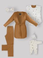 ست لباس بارداری / شیردهی مادر و نوزاد 6تکه پنبهٔ ارگانیک طرح مادلین با سرهمی و کلاه سایز 1 | برند دریمو