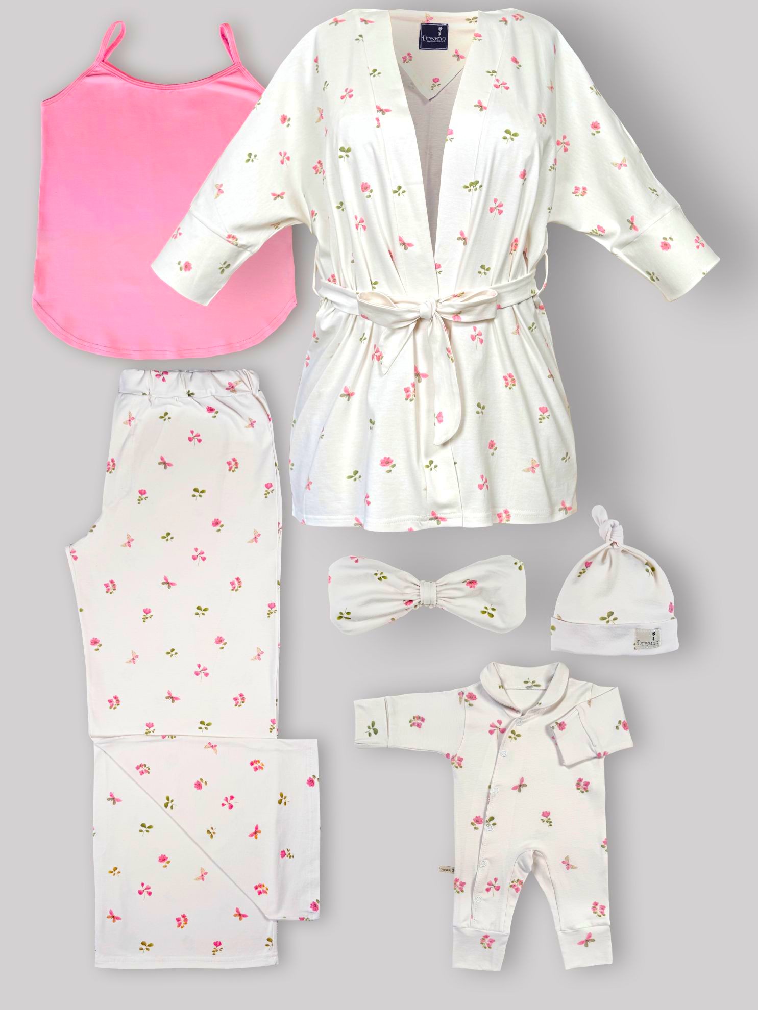 ست 6 تکه بیمارستانی طرح پروانه با سرهمی و کلاه (سایز2)