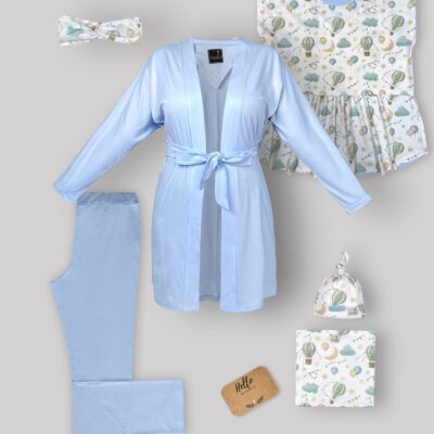 ست پیراهن بارداری،شیردهی و زایمان طرح ماریگلد-Marigold با دورپیچ و کلاه (سایز1)