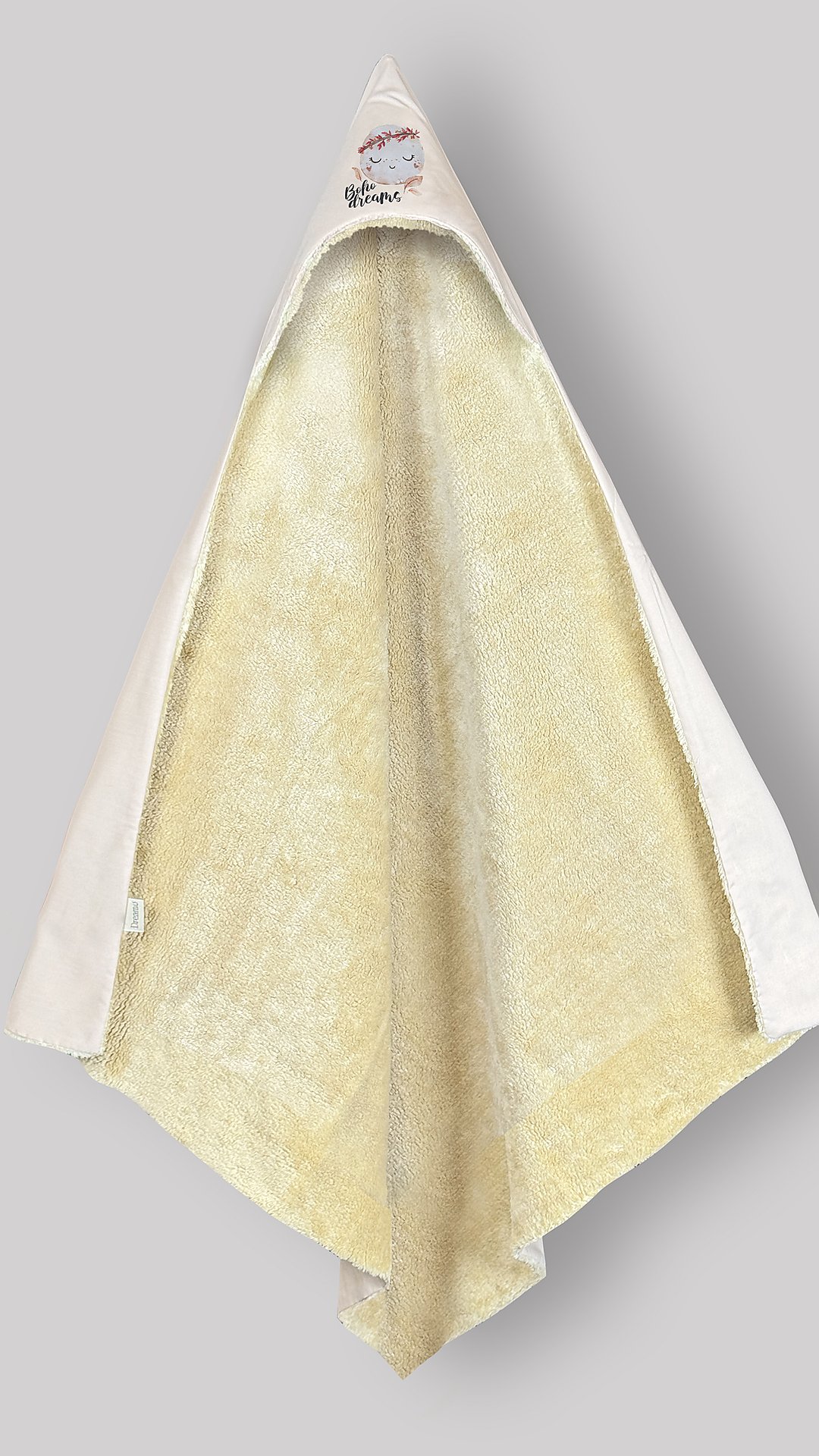 پتو دورپیچ دولایه نوزاد (پشت تدی) کلاه دار طرح ماه | برند دریمو