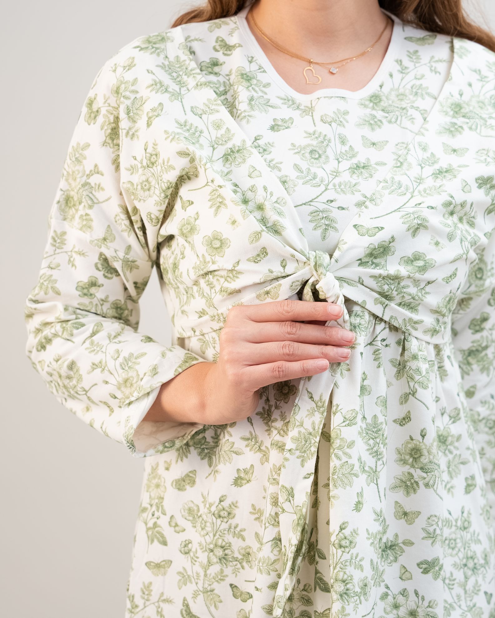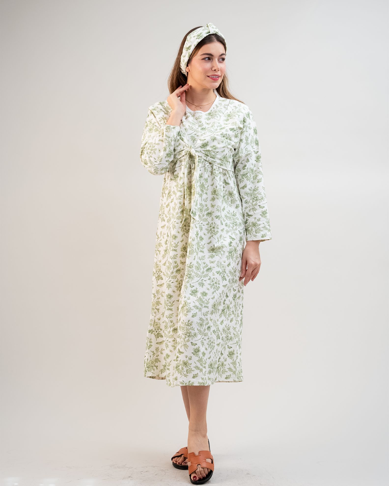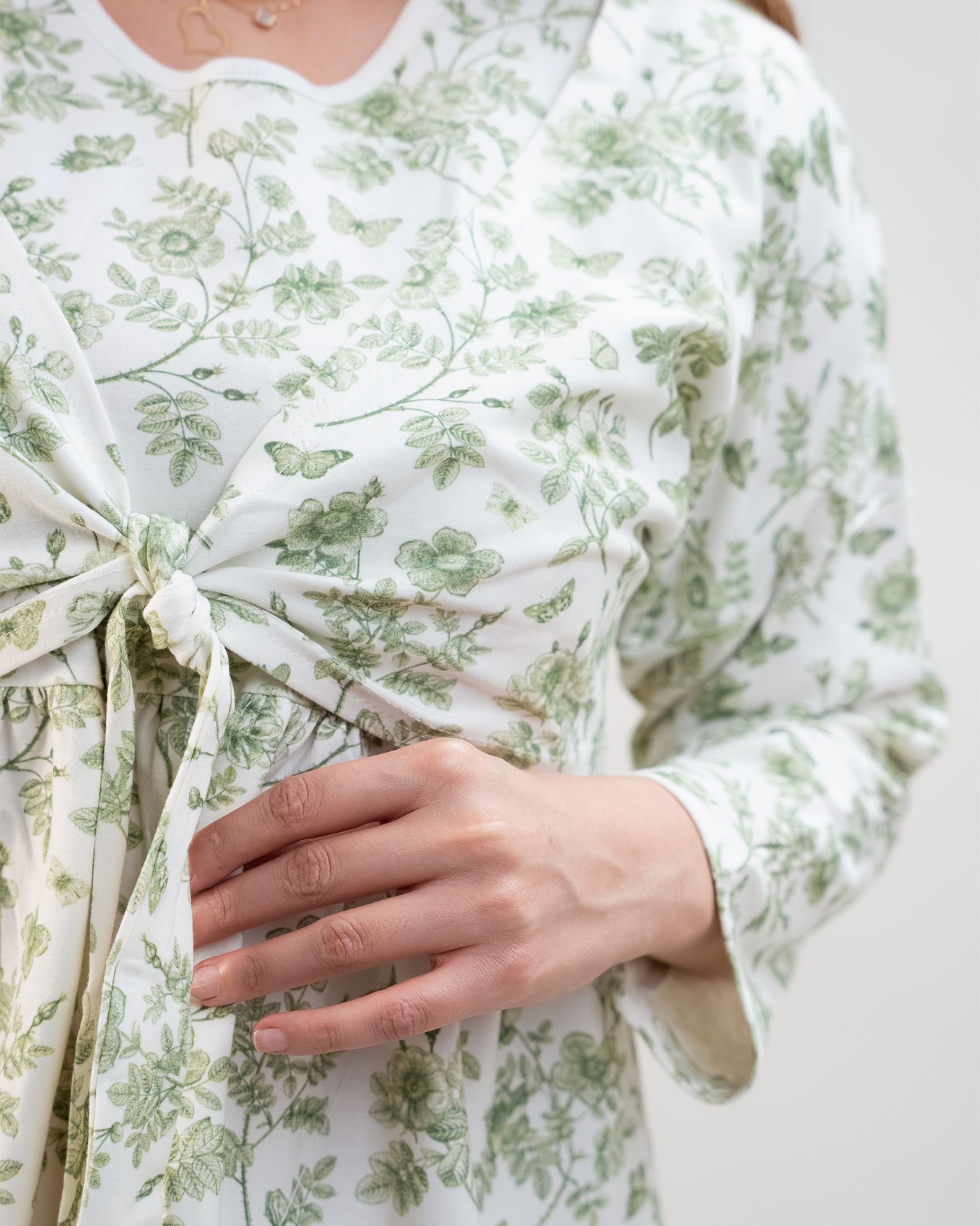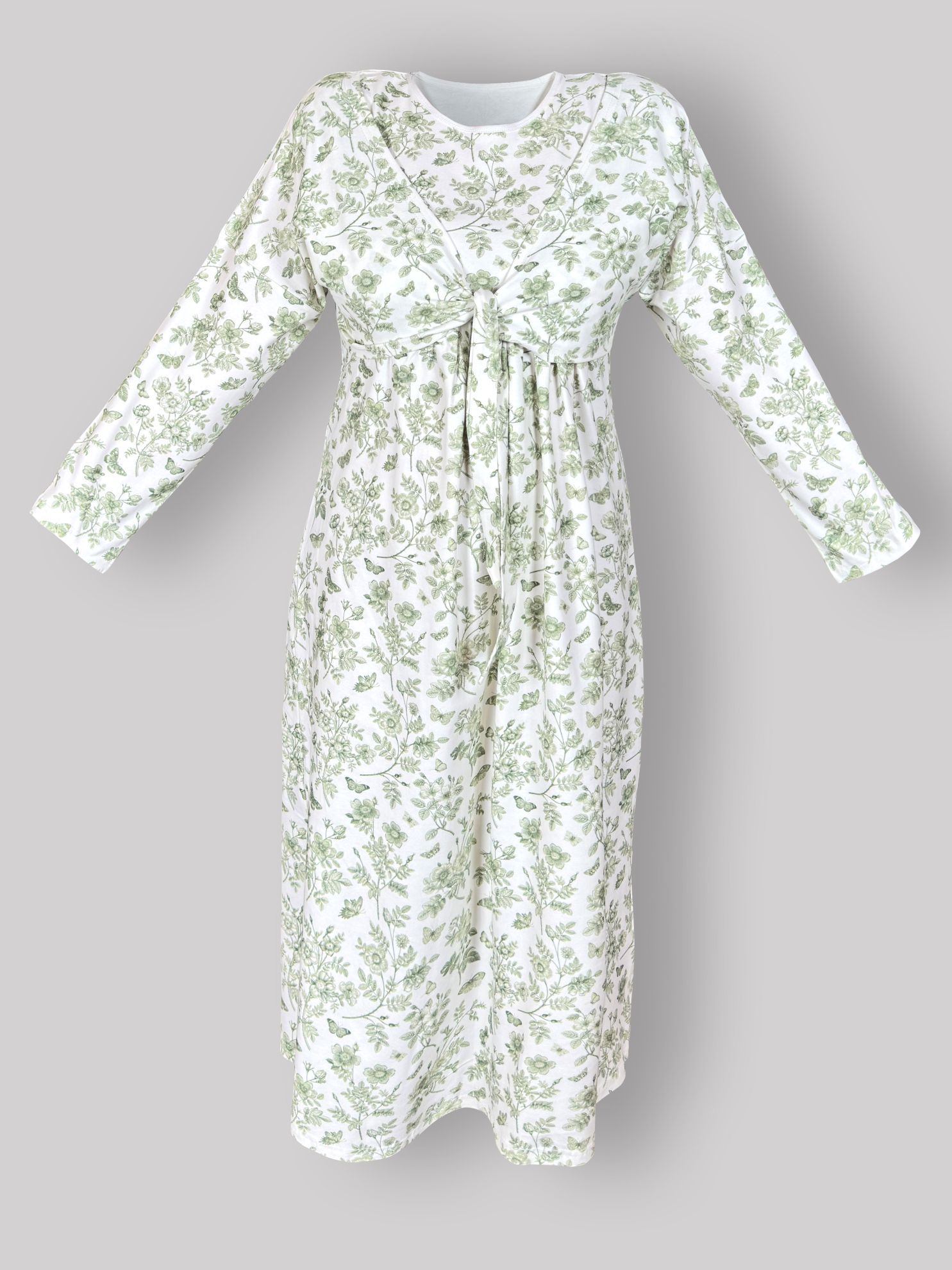 پیراهن راحتی با قابلیت شیردهی آسان (بدون هدبند/ تل) پنبه ارگانیک طرح هربا (Herba) | برند دریمو