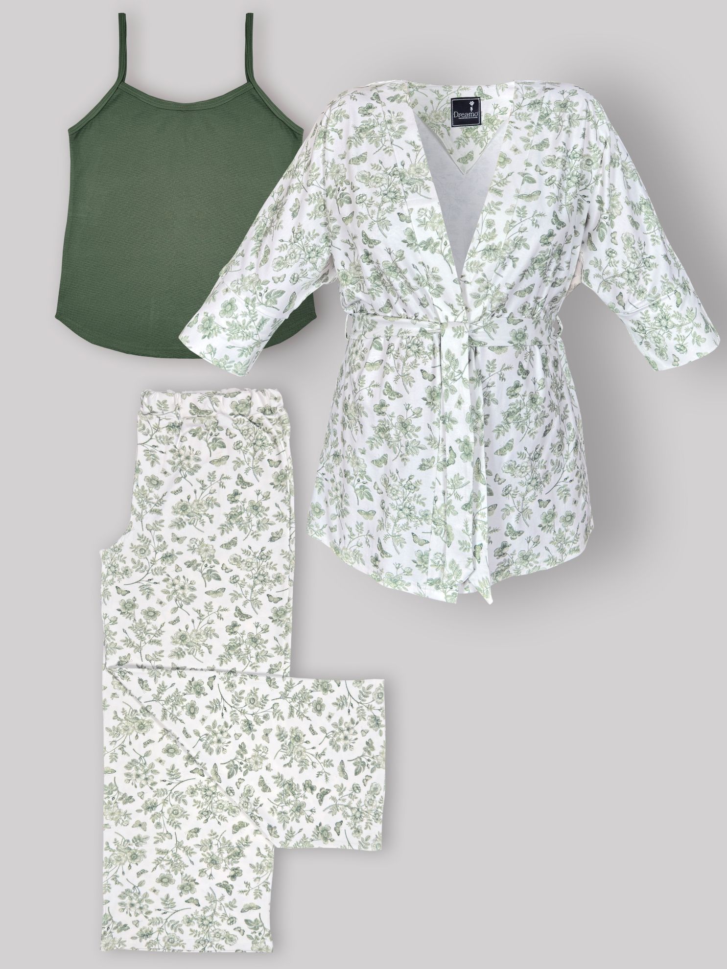 ست 3 تکه راحتی / بیمارستانی (بدون هدبند/ تل) پنبهٔ ارگانیک طرح هربا(Herba) | برند دریمو