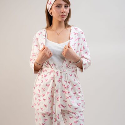 | روبدوشامبر | اندازه ها به سانتیمتر | تاپ بندی | اندازه ها به سانتیمتر | شلوار واید | اندازه ها به سانتیمتر |