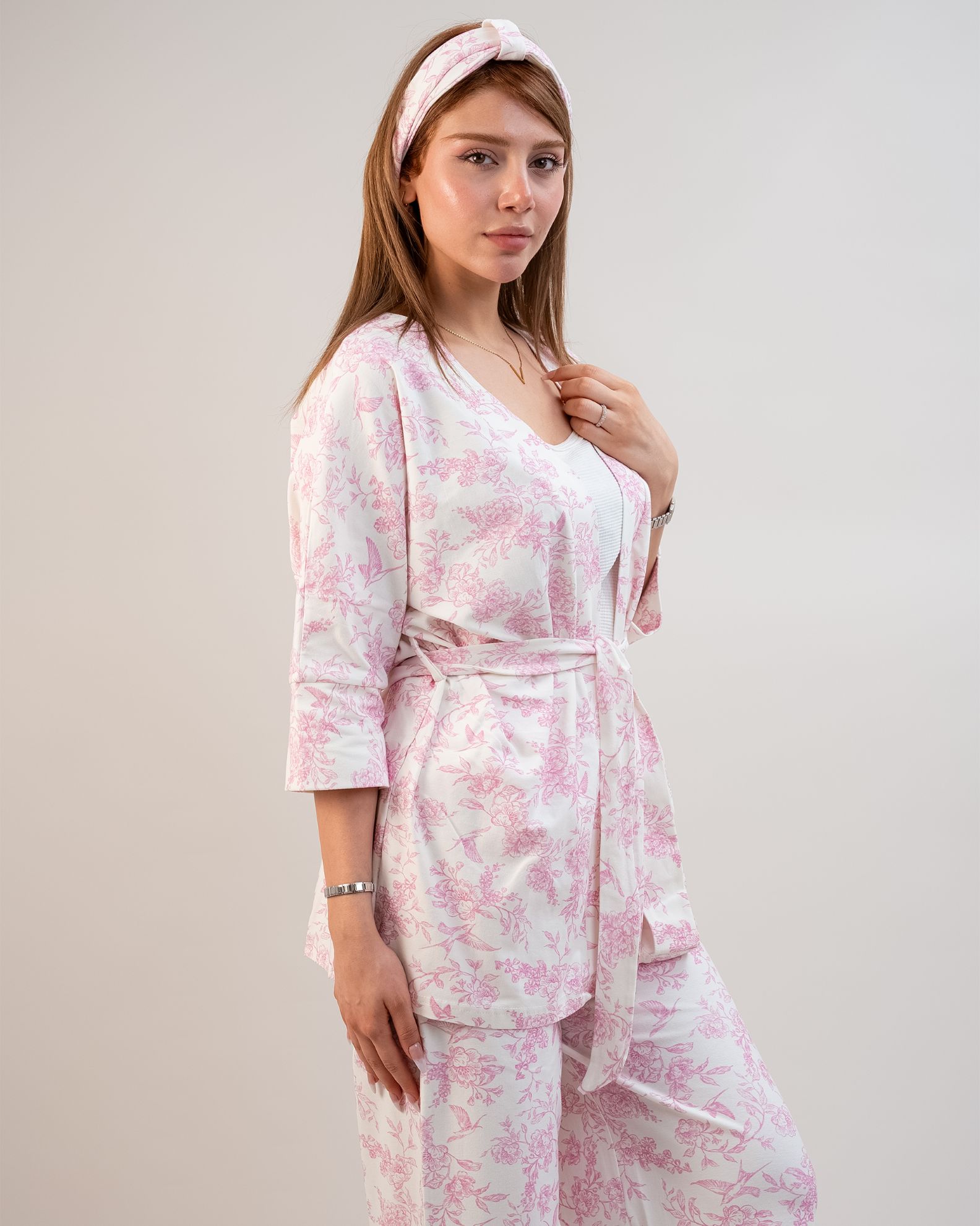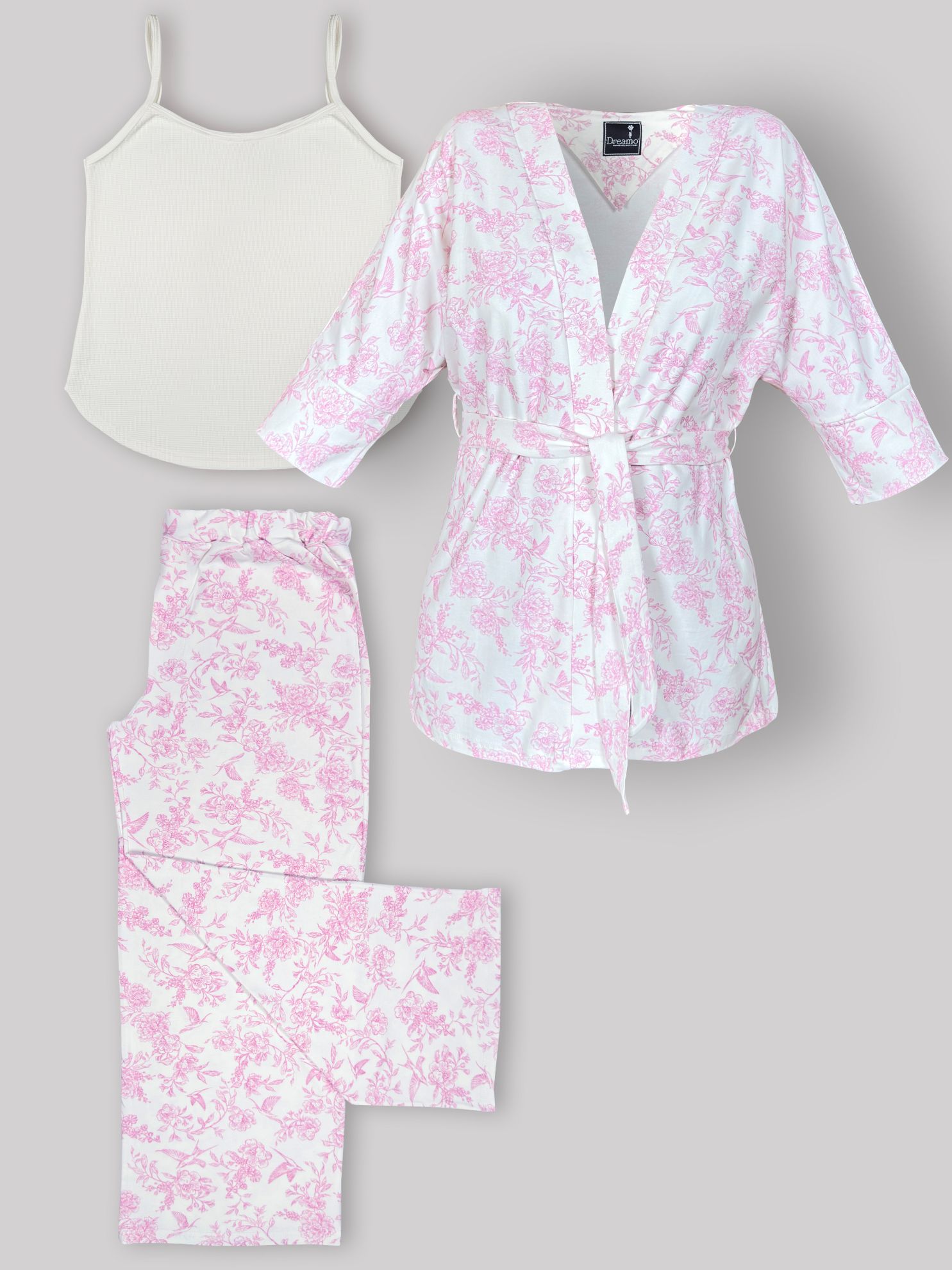 ست 3 تکه راحتی / بیمارستانی (بدون هدبند/ تل) پنبهٔ ارگانیک طرح فلورا (Flora) | برند دریمو