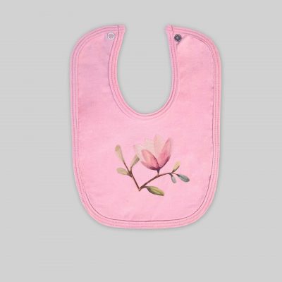 پیشبند نوزاد تک رنگ صورتی (با استیکر طرح مگنولیا)