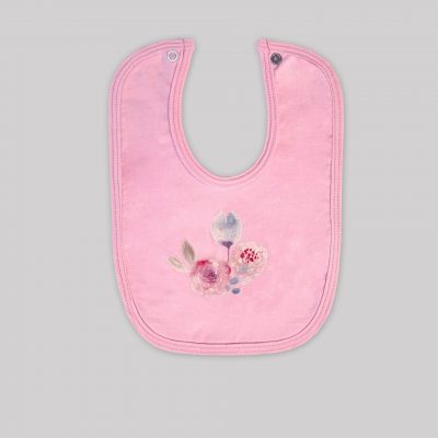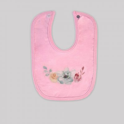 پیشبند نوزاد تک رنگ صورتی (با استیکر طرح کاملیا)
