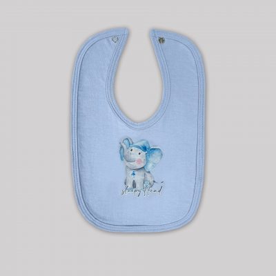 پیشبند نوزاد تک رنگ آبی (با استیکر طرح اسلیپی هد )