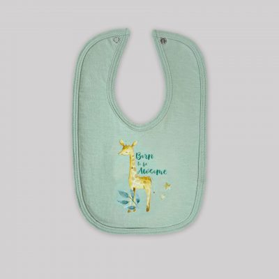 پیشبند نوزاد تک رنگ سبز (با استیکر طرح سافاری)