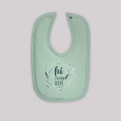 پیشبند نوزاد تک رنگ سبز (با استیکر طرح زیتون)