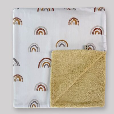 پتو دورپیچ دولایه نوزاد (پشت تدی) کلاه دار طرح رنگین کمان | برند دریمو